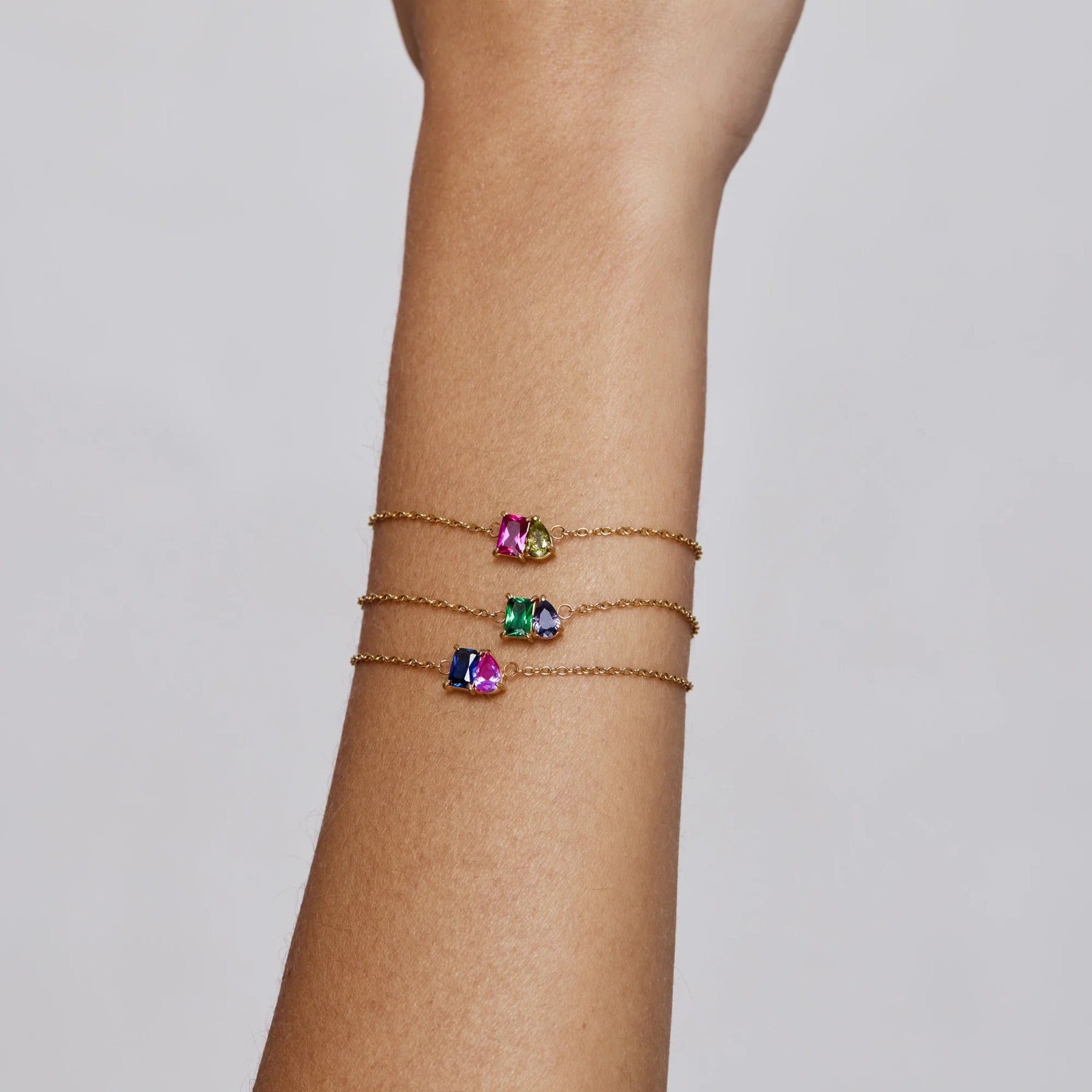 Carry your favourite person with you. The Duo Birthstone Bracelet pairs two vibrant stones to celebrate a love that grows every day. Set on a fine golden chain, each bracelet tells its own story of connection and care. A sweet piece that feels deeply personal, whether worn alone or layered with your everyday favourites.