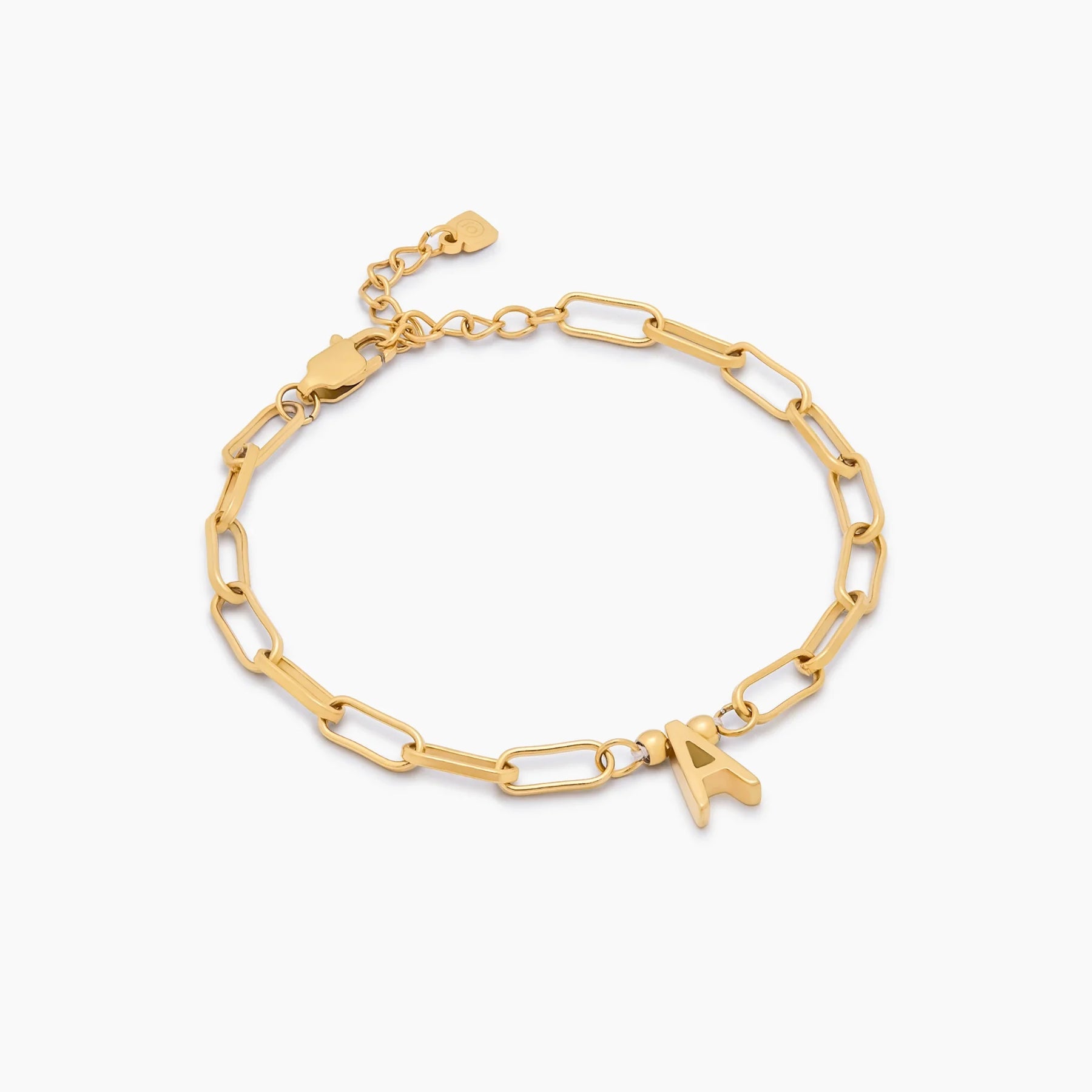The Paperclip Initial Bracelet is where bold design meets personal detail — crafted to highlight your initial in the most refined way. With its eye-catching links and luxe weight, it brings a modern edge to your jewelry wardrobe. Made to layer or wear solo, this is a statement rooted in meaning. For initials that matter, and pieces that last.