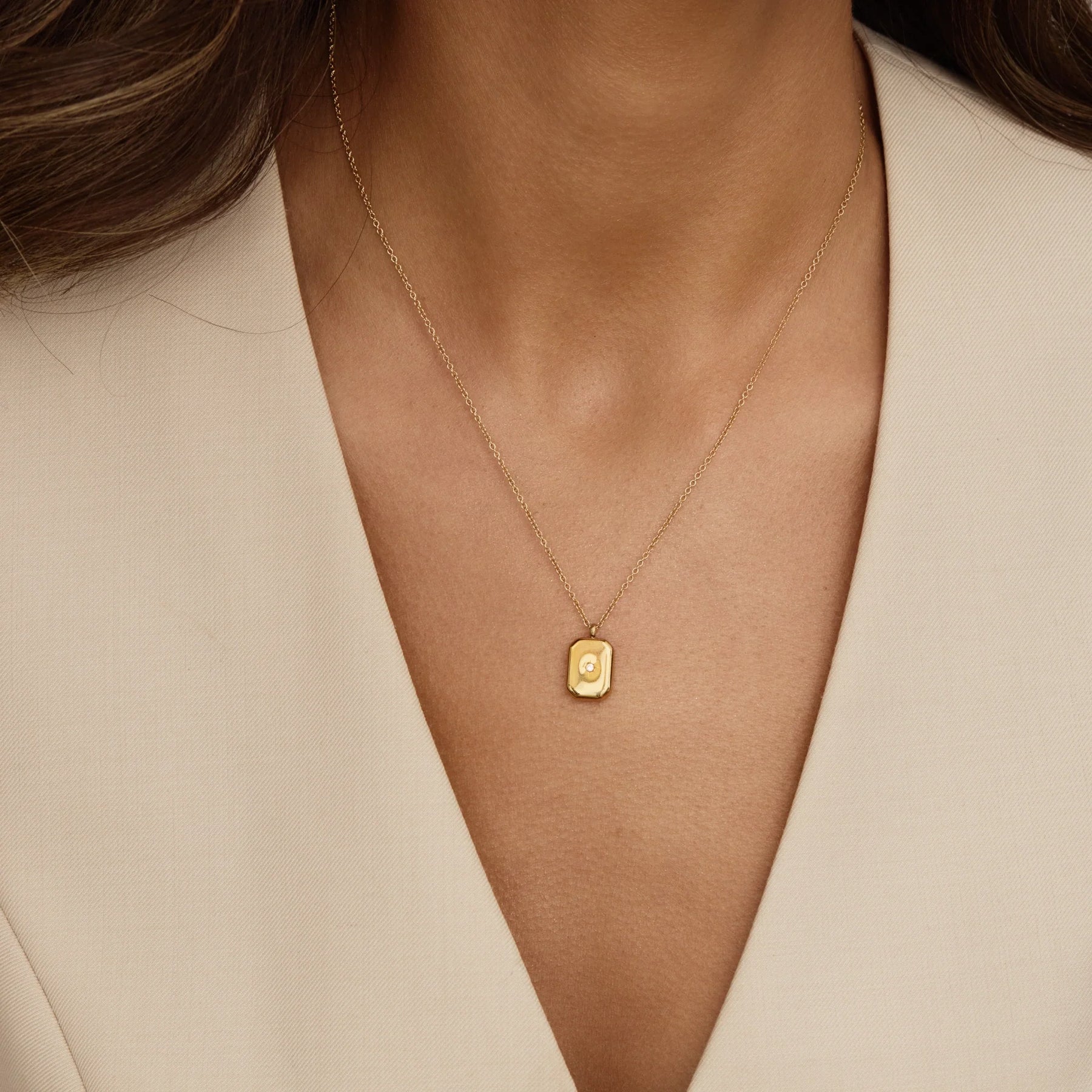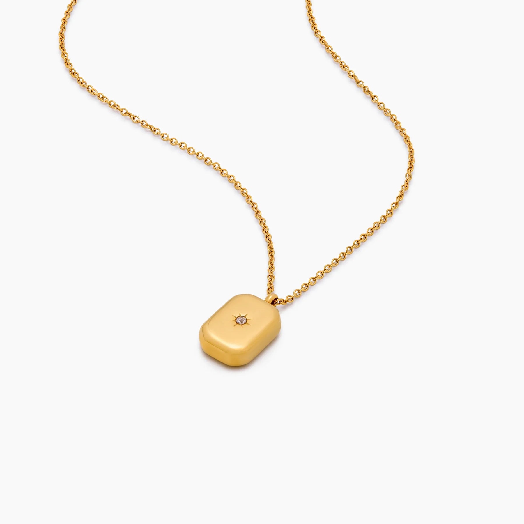 Embodying timeless elegance, the Stella Pendant Necklace features a polished golden pendant with a sparkling accent stone. The delicate chain allows the pendant to rest beautifully, making it a subtle yet sophisticated addition that complements various styles with ease.