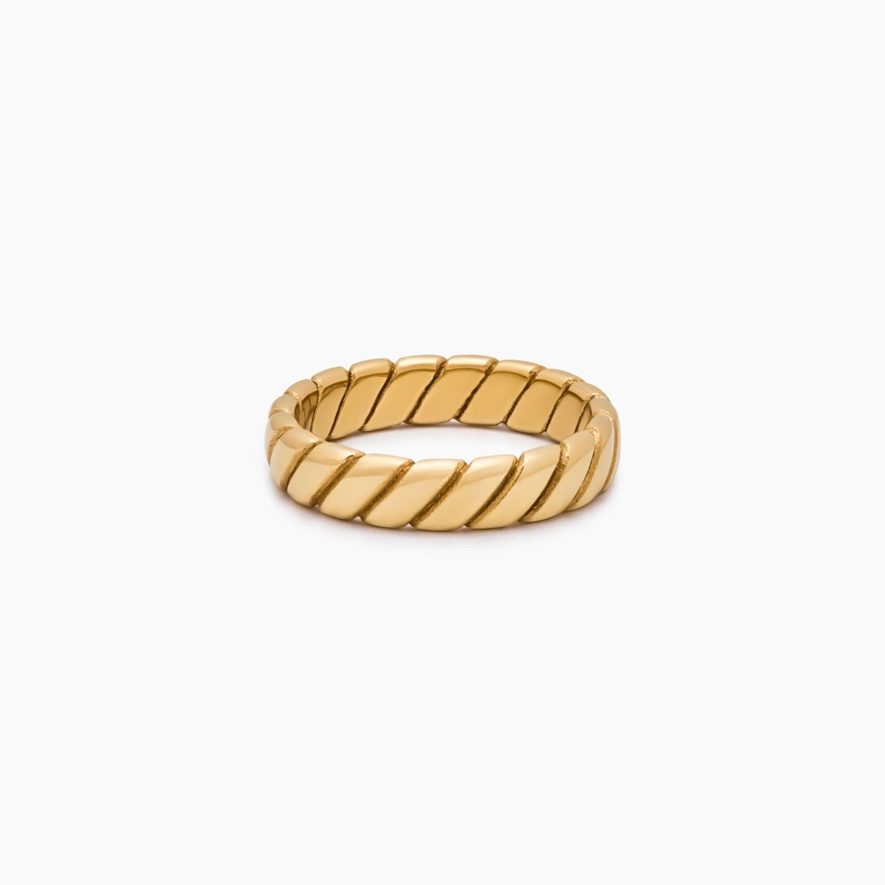 The Bold Twist Ring makes its mark with soft, sculptural curves and a polished finish. A modern staple that brings structure to your stack or stands strong on its own—refined, wearable, and always in rotation.