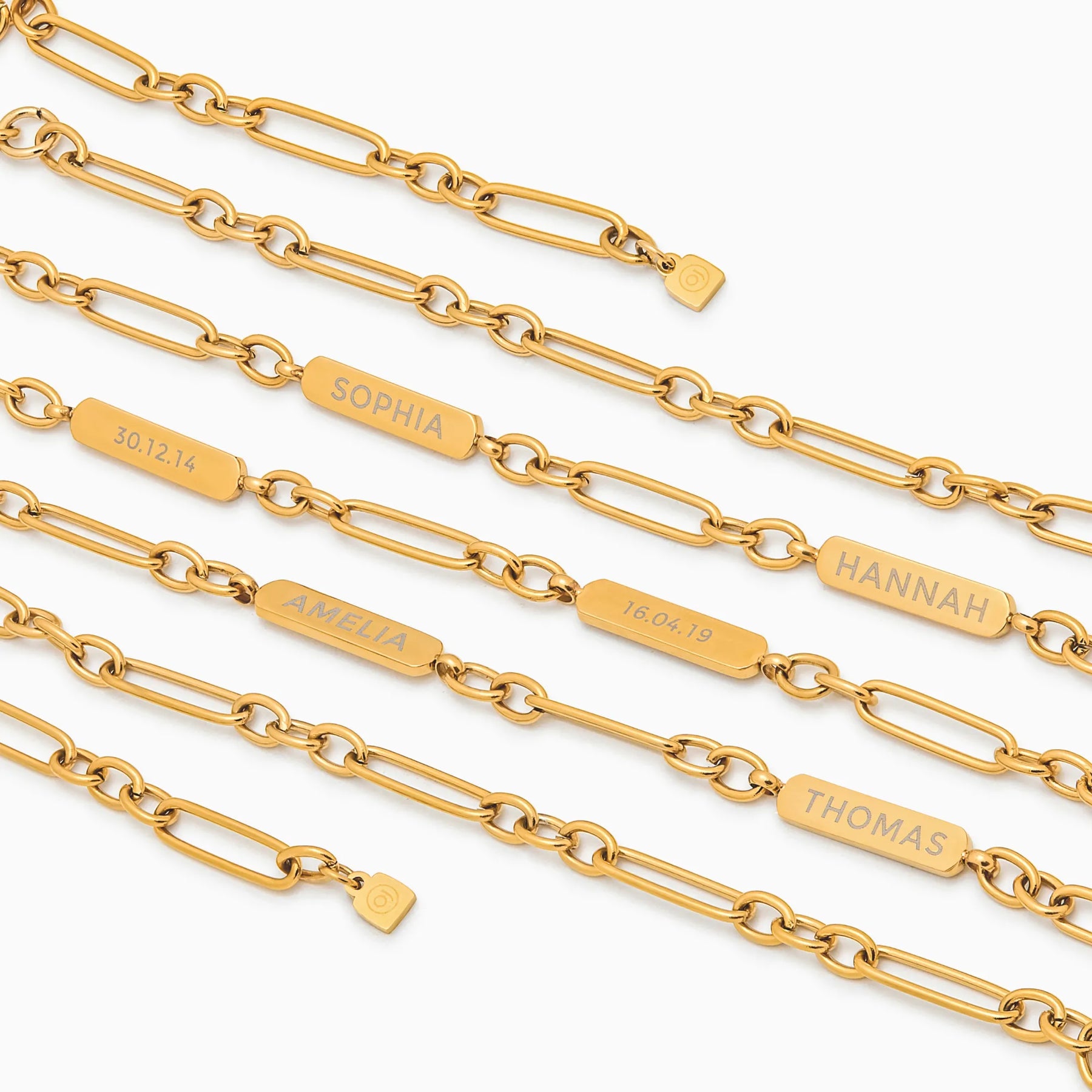 Modern, intentional and deeply personal, the Engraved Name-Date Paperclip Necklace brings meaning to minimalism. Its elongated links create a bold yet refined silhouette, while each custom engraved tag lets you carry the names and dates that matter most. Whether it represents your children, a meaningful milestone or someone you love, this necklace is designed to honor your story.