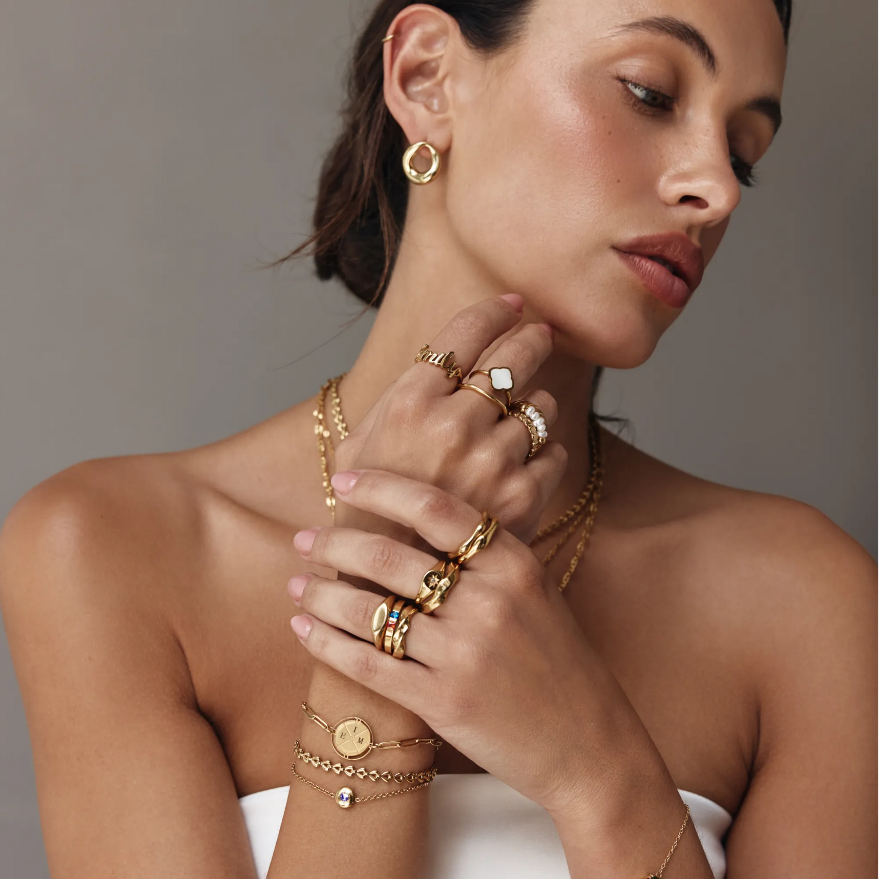 Every piece is made from surgical-grade stainless steel and plated with 18K gold using Physical Vapor Deposition (PVD) — a coating method that's 10x thicker than standard gold plating. This is the same technology used in fine jewelry. The result is a finish that's built to last years, not weeks.